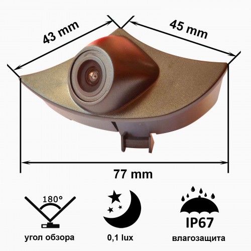 Штатні камери переднього огляду Prime-X призначені для установки на автомобіль без будь-яких змін, в штатні місця (як правило – в решітку радіатора або в емблему автомобіля).