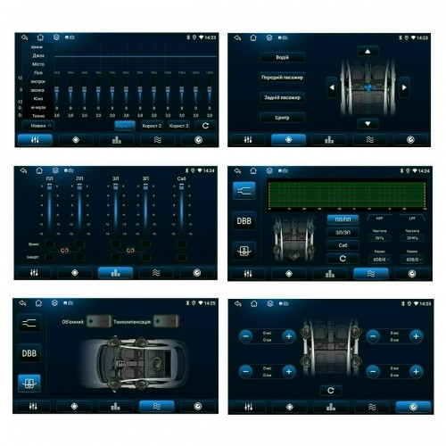 Універсальний мультимедійний центр (230:220 x 130 мм) • Операційна система: Android 13 • Процесор: Unisoc UIS8581A, 8 ядер, Сortex A55, частота 1.6ГГц • Пам'ять: 4Гб х 64Гб • Екран: 9.5 дюйми, QLED 2К, 2000 х 1200 • Потужність: 4 х 50Вт (IC 7388) • GSM модуль 4G, GPS, WIFI (5 ГГц), Bluetooth • Радіоприймач: 54 FM, 18 AM (SI4755), RDS • DSP процесор (AK7604) • Еквалайзер: 48 смуг • Інтерфейс: 2 USB • Лінійні аудіовиходи, RCA: 5 (2 перед / 2 тил / 1 сабвуфер) • Вхід камери заднього огляду (AHD 720P_1080P / CVBS PAL_NTSC) • Вхід камери переднього огляду (програмується) • Вхід для зовнішнього мікрофону • CarPlay/Android Auto • Підтримка кнопок на кермі • ISO конектор