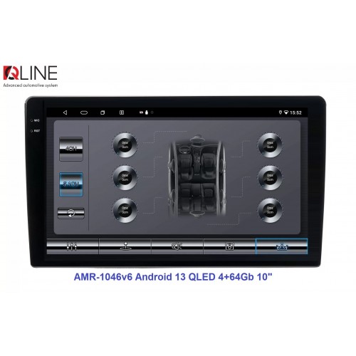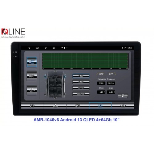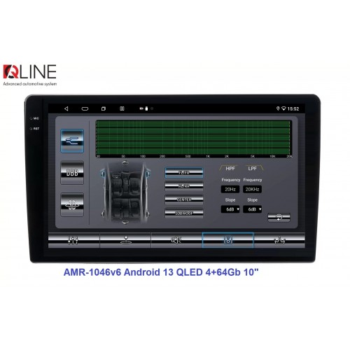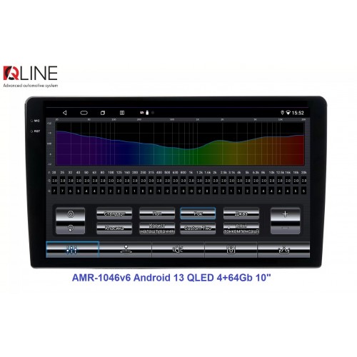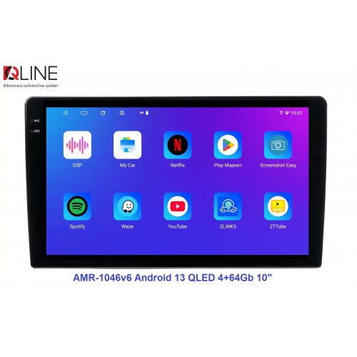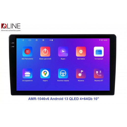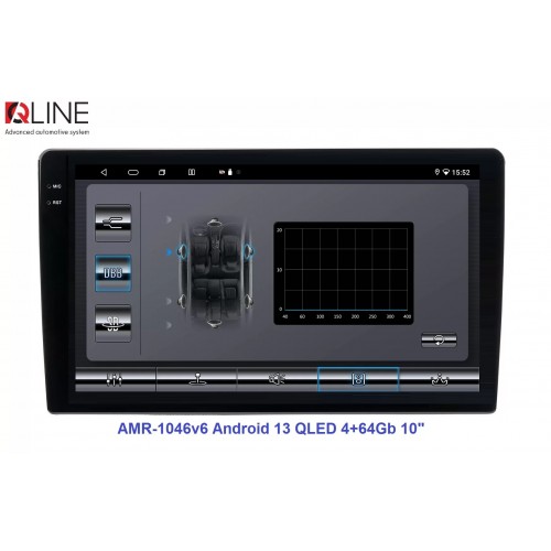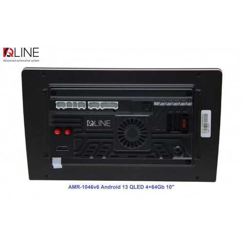 Розмір (ШхВхГ) - 10" (250/241х146х55 mm); Екран 10" (1280x720Р); OS Android 13; пам'ять RAM/ROM – 4/64; процесор – 8 ядерний Allwinner T527 2,0 ГГц; 4G модем; Carplay, Android auto; Wi-Fi 5G/2.4G; GPS; Bluetooth 5.4; підсилювач TCB001; потужність – 4х50W; DSP Professional процесор; система кругового огляду 360'; підключення камери заднього/переднього виду – AHD/TVI/CVBS; виходи – 5+1 Line out RCA+ SUB;охолодження - кулерQline AMR-1046v6 — це мультимедійний центр під керуванням OS Android 13 з яскравим 10-дюймовим QLED-екраном із роздільною здатністю 1280×720P, потужним 8-ядерним процесором Allwinner T527 2,0 ГГц, 4/64 ГБ оперативної та вбудованої пам’яті, високоякісним DSP-процесором із 32-смуговим професійним еквалайзером, системою кругового огляду 360° та великим набором інших корисних функцій.