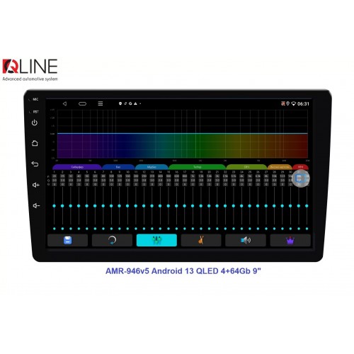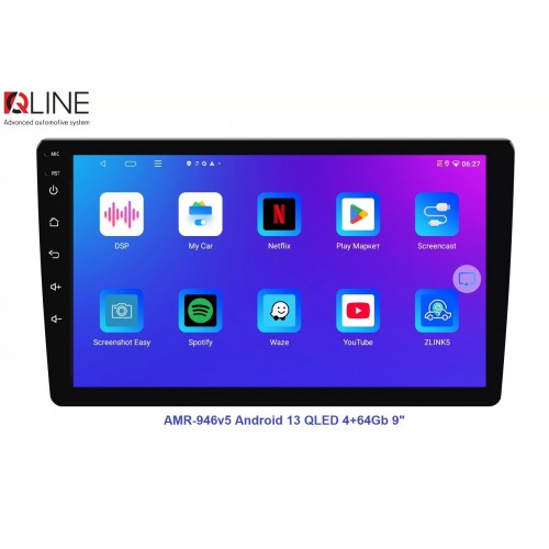 Як видно з назви, новинка має 4/64 Гб пам'яті, 9" екран та OS Android 13 як і попередня версія, але решта функціоналу дуже змінилась. Qline AMR-946v5 отримала яскравий QLED екран 1280*720, популярний та надійний процесор Allwinner A133P 1.8GHz, потужний підсилювач TCB001, радіомодуль SI4755 з покращеним прийомом радіо та RDS, високофункціональний DSP процесор AKM7604, Bluetooth 5.4 і головне - підтримку кругового огляду.