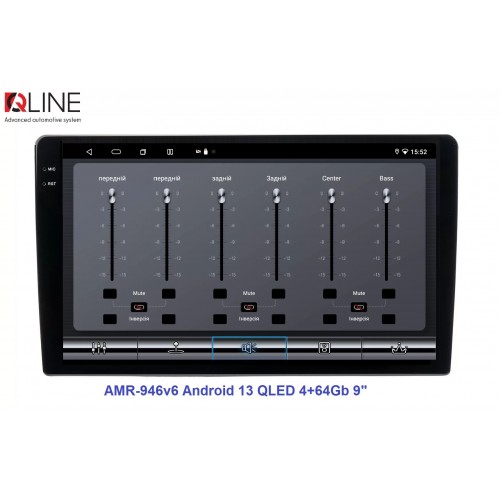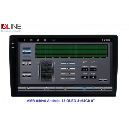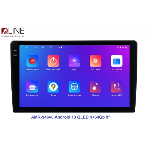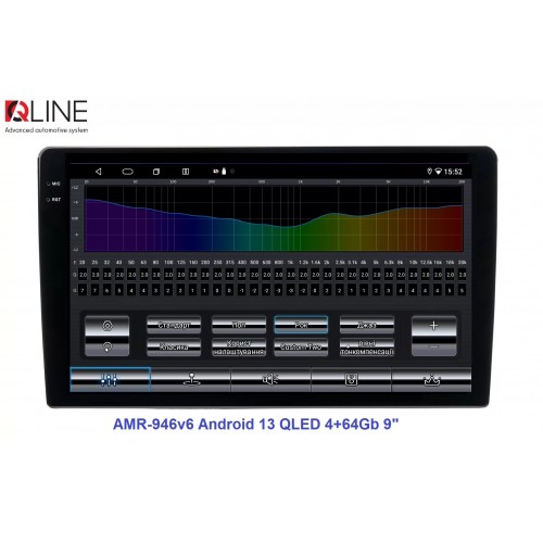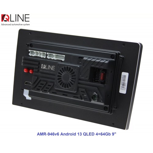 Розмір (ШхВхГ) - 9" (230/220х130х55 mm); Екран 9" (1280x720Р); OS Android 13; пам'ять RAM/ROM – 4/64; процесор – 8 ядерний Allwinner T527 2,0 ГГц; 4G модем; Carplay, Android auto; Wi-Fi 5G/2.4G; GPS; Bluetooth 5.4; підсилювач TCB001; потужність – 4х50W; DSP Professional процесор; система кругового огляду 360'; підключення камери заднього/переднього виду – AHD/TVI/CVBS; виходи – 5+1 Line out RCA+ SUB;охолодження - кулерQline AMR-946v6 — це мультимедійний центр під керуванням OS Android 13 з яскравим 9-дюймовим QLED-екраном із роздільною здатністю 1280×720P, потужним 8-ядерним процесором Allwinner T527 2,0 ГГц, 4/64 ГБ оперативної та вбудованої пам’яті, високоякісним DSP-процесором із 32-смуговим професійним еквалайзером, системою кругового огляду 360° та великим набором інших корисних функцій.