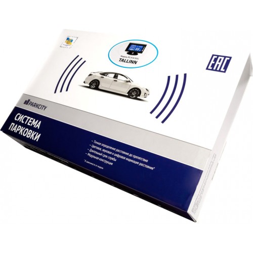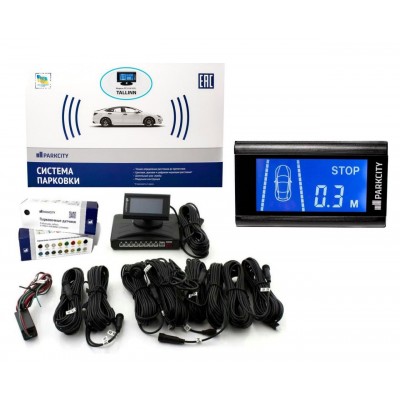 Паркувальна система ParkCity Tallin 818/305L має в комплекті вісім датчиків діаметром 18 мм, які призначені для встановлення ззаду та спереду транспортного засобу. Також комплектація включає РК-дисплей, який дає можливість стежити водію за дистанцією до перешкоди.