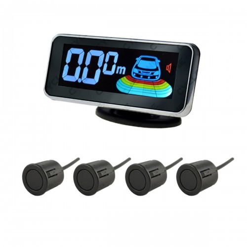 4 знімних чорних датчика з водонепроникними конекторами. Датчики з розширеною горизонтальною діограмою випромінювання. Діаметр датчиків - 18,5 мм. Зона дії датчиків 0,3-2,0м. Можливість приглушення/відключення звуку (коротким натисканням на кнопку ззаду дисплея). Можливість перемикання метри/фути (довгим натисканням на кнопку ззаду дисплея) Індикація відстані до перешкоди: см або десятки см. Напруга живлення - 9 -16V